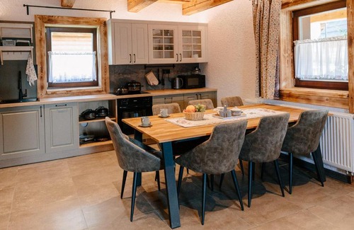 20 miles from Orava Castle in Zuberec, Challet Tonka provides accommodations with access to a hot tub, wellness packages, and fitness room. This property offers access to a balcony, a pool table, free private parking, and free Wifi. Outdoor seating is also available at the chalet. Providing a terrace with garden views, this chalet also provides guests with a flat-screen TV, a well-equipped kitchen with a dishwasher, an oven, and a microwave, as well as 4 bathrooms with a walk-in shower and a hair dryer. There's also a seating area and a fireplace. There is an on-site family-friendly restaurant, coffee shop, and bar. You can play table tennis and darts at Challet Tonka. A water park is available on-site, and both skiing and cycling can be enjoyed close to the accommodation. Aquapark Tatralandia is 20 miles from Challet Tonka, while Demanovská Ice Cave is 28 miles away. Poprad-Tatry Airport is 56 miles from the property.