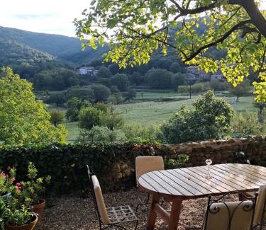 Chambre d'Hôte dans MAS proche Anduze Cévennes avec piscine is a recently renovated bed and breakfast in Mialet where guests can make the most of its garden and barbecue facilities. This property offers access to a terrace, table tennis, free private parking, and free Wifi. Guests can make use of the picnic area or the seasonal outdoor pool, or enjoy views of the mountain and garden. At the bed and breakfast, each unit has a desk. The rooms are fitted with a coffee machine and a private bathroom with a shower and a hair dryer, while selected rooms here will provide you with a fully equipped kitchen. At the bed and breakfast, the units are fitted with bed linen and towels. A continental breakfast is available at the bed and breakfast. Guests may relax in the on-site lounge, while packed lunches are also available upon request. You can play darts at Chambre d'Hôte dans MAS proche Anduze Cévennes avec piscine, and bike rental is available. A water park is available on-site, and both cycling and fishing can be enjoyed close to the accommodation. Demoiselles Cave is 31 miles from Chambre d'Hôte dans MAS proche Anduze Cévennes avec piscine, while La Bambouseraie Botanical Garden is 8.7 miles away. Nimes-Ales-Camargue-Cevennes Airport is 47 miles from the property.