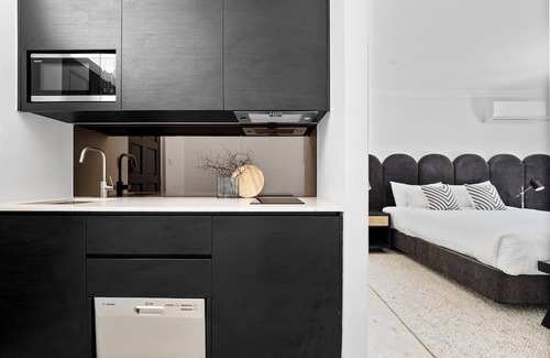 All our rooms feature 65" smart TVs, Netflix for your entertainment needs, a well-equipped kitchenette, and have been thoughtfully renovated and curated interior designed to create a stylish and inviting ambience.
