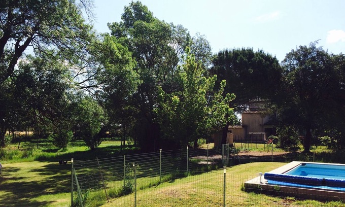 Character house in a farmhouse with landscaped above ground pool is located in Servian. Character house in a farmhouse with landscaped above ground pool provides accommodation, featuring TV, Wheelchair Accessible, Balcony/Terrace, among other amenities. This House features TV, Wheelchair Accessible, Balcony/Terrace, to make your stay a comfortable one.