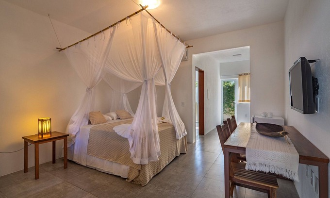 This type of Suite is perfect for spending your holidays in complete tranquility. Ideal for couples or solo travelers. Spacious, cozy and fully integrated into nature. The comfort of staying in a private corner just a few steps from the beaches and Rua do Mucugê, the most charming street in Brazil. Fully equipped and with well-lit and airy spaces.