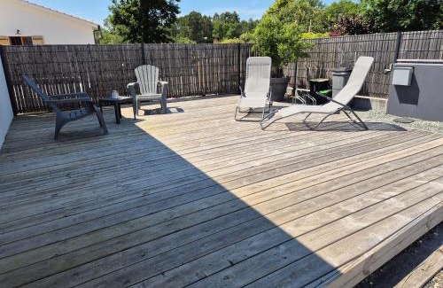 Charmant logement neuf offers accommodations in Hourtin, 31 miles from Gironde Estuary and 19 miles from Méjanne Golf Course. This apartment provides free private parking, bicycle parking, and free Wifi. Outdoor seating is also available at the apartment. Providing a terrace with garden views, this apartment also offers a flat-screen TV, a well-equipped kitchen with a microwave, a toaster, and a fridge, as well as 1 bathroom with a shower and a hair dryer. For added privacy, the accommodation has a private entrance and soundproofing. Ardilouse-Lacanau Golf is 19 miles from Charmant logement neuf, while Notre-Dame de la Fin des Terres Basilica is 25 miles away. Bordeaux–Mérignac Airport is 35 miles from the property.