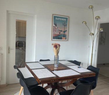 Charmant T3 - Arènes de Bayonne is located in Bayonne, just 4.1 miles from Biarritz La Négresse Train Station and 13 miles from Saint Jean Baptiste Church. This property offers access to a balcony, free private parking, and free Wifi. The accommodation features an elevator and bicycle parking for guests. Featuring a terrace and mountain views, the spacious apartment includes 2 bedrooms, a living room, flat-screen TV, an equipped kitchen, and 1 bathroom with a shower. Guests can take in the ambience of the surroundings from an outdoor dining area. This apartment is non-smoking and soundproof. Saint Jean de Luz Train Station is 13 miles from the apartment, while Hendaye Train Station is 22 miles from the property. Biarritz Airport is 2.5 miles away.