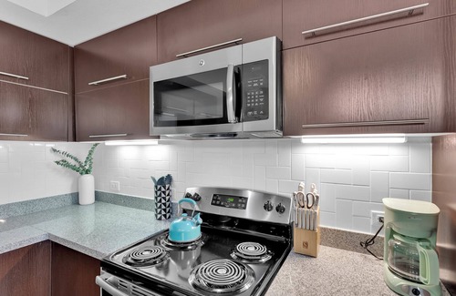 Fully Equipped Kitchen with Stainless Appliances + Coffee Machine
