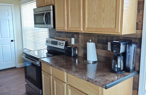 This Ward Watson Mansion carriage house boasts 1 inviting bedroom with a queen bed and balcony. The 2 bathrooms are equipped with a hair dryer, towels, amenities kit, and shower. In addition, there is a cozy living room with a queen murphy bed for extra sleeping space. Guests can enjoy the nice and wonderful amenities like AC, iron, washing machine, heating, WiFi, equipped kitchen, an outdoor space with grill, and more. This is the second floor of the carriage house with a private entrance and yard. We're happy to assist with any questions while you stay at our house.