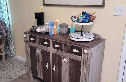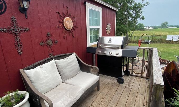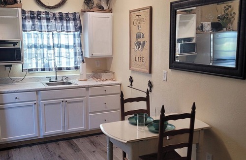Rustic Ridge is nestled in Blue Ridge, this delightful cottage offers guests a tranquil escape. With 1 cozy bedroom featuring a full bed, 1 full sized fold out couch, and 1 bathrooms equipped with a hair dryer and bathtub and hand held shower. The bathtub is accessible friendly as it is a walk in style. This charming retreat is perfect for a relaxing getaway. Enjoy the AC, WiFi, and heating, and hrose boarding along with amenities provided for your comfort. Book now and enjoy everything this cottage has to offer. Coffee, creamer, water, and snacks provided, pet friendly with a $30 per pet fee per booking.