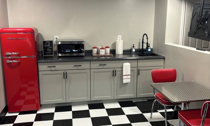 Charming 1-bedroom diner theme apartment with AC and WiFi in Morrow is located in Morrow. Charming 1-bedroom diner theme apartment with AC and WiFi in Morrow provides accommodation, featuring Air Conditioner, TV, Fireplace/Heating, among other amenities. This Apartment features Air Conditioner, TV, Fireplace/Heating, to make your stay a comfortable one.