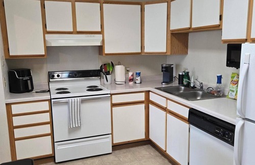 Your Saint James adventure begins at this 1-bedroom apartment. The bedroom features a lovely king bed, perfect for a good night's sleep. This cozy space includes a washing machine/dryer, AC, Wi-Fi, and heating for your convenience. Enjoy the screened in patio area, full kitchen, queen sofa sleeper in living room, garage is optional for additional $25.00 per stay.