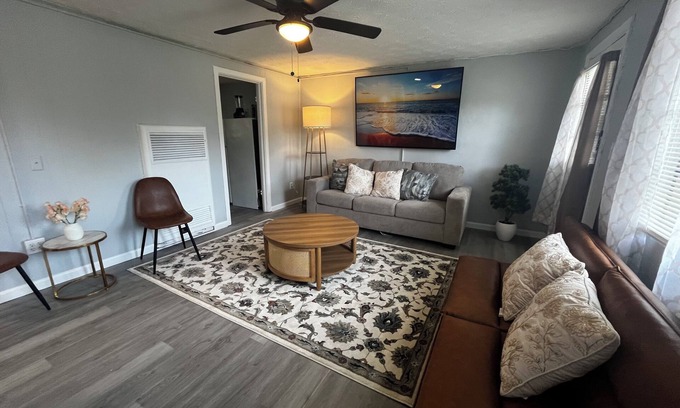Relax at our historical apartment near SGMC, VSU, and Moody Air Force Base. Featuring one queen bed a queen sofa bed, and a twin sofa bed. The space is perfect for up to five guests or traveling by yourself. It is fully equipped with all essential amenities you will find yourself at ease in our contemporary space!