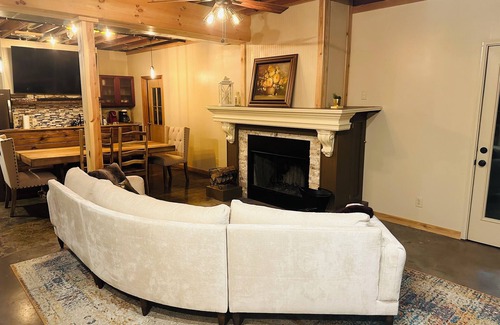 Stay comfortably in Sugar Creek at this 1-bedroom house. The bedroom features a cozy king bed, perfect for a good night's sleep. With amenities like heating, AC, and a hair dryer, guests will feel right at home. The 2 bathrooms are stocked with essentials like a hair dryer and a shower. Our place is equipped for both long or short stays to make your holiday one to remember.