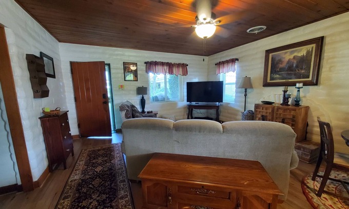 Experience Fresno like a local in this marvelous 1-bedroom cottage. Relax in the soothing living room with a comfy sofa bed, and enjoy a peaceful night's sleep in the queen bed. With 1 full bathroom equipped with blow dryer and shower, you'll feel right at home. Whether you're exploring the city or unwinding in the fitness room, this phenomenal acre property with a mini-orchard with oranges, lemons, apples, and grapefruit available for guests when in season, has everything you need for a fantastic stay--including ample extra parking and a children's playhouse stocked with trikes and bikes for small children as well as three swings available for our guests.