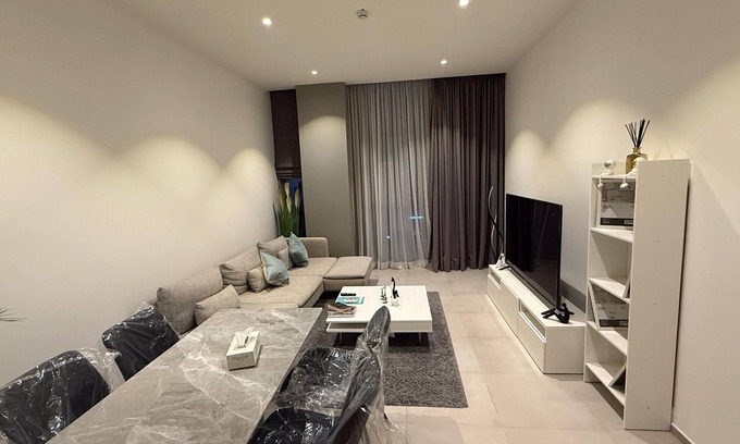 This 1-bedroom apartment is perfect for your escape to Seef. The cool fitness room and AC will keep guests comfortable during their stay. With 2 bathrooms and charming decor, this brilliant property is ideal for a relaxing getaway. We'll be available to answer any questions while you stay at our place.