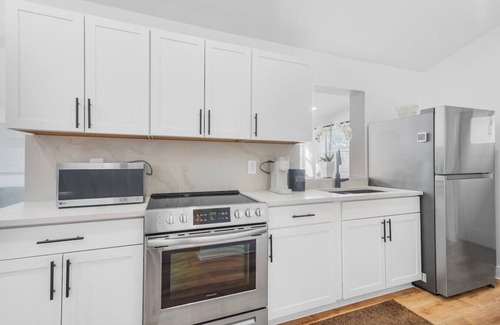 Fully Equipped Kitchen: Whip up delicious meals in the modern kitchen, equipped with all the essentials, including a stove, refrigerator, microwave, and coffee maker.