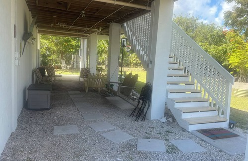 Discover the beauty of Big Pine Key from this delightful 2-bedroom house. With a king bed and a queen bed, guests can relax in comfort. Enjoy the convenience of WiFi, AC, and a washing machine during your stay. The 2 bathrooms are equipped with all of the conveniences of home. Located between the Back Bay and the Ocean. Property sits on an acre lot, enjoy the breezy, shady side porch or the blazing sun on the rear porch while cooking on the Traeger Grill. Modern conveniences close by. Grocery store, lots of Eateries The Famous No Name Restaurant, Forks & Stixs, Boardwalk, Jolly Mon. Bahia Honda just a short ride, The Seven Mile Bridge, The Blue Hole, Horseshoe, Big Pine Key Park, Ramrod Fishing Hole, The Jumping Bridge, Boat Ramps and Key Deer in the yard. Key West, Fort Zachary Taylor, Mallory Square Sunsets only 30 miles away. There is also a RV spot for rent on the property if you bring your RV to accommodate more guests. The Florida Keys 42 Bridges connecting 40 Islands. Paradise