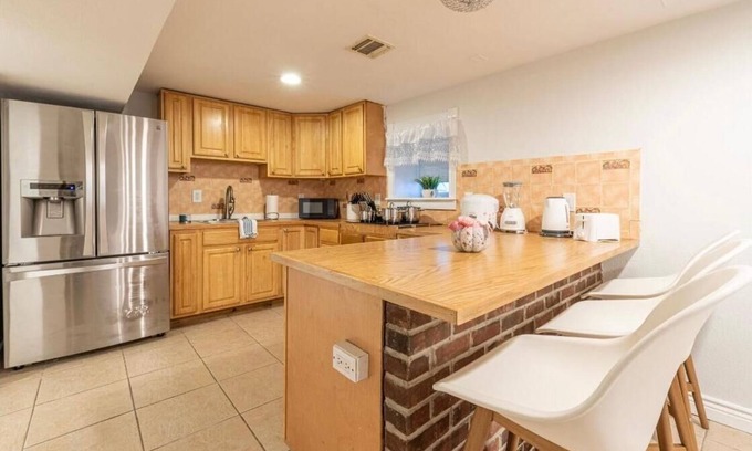 This North Bergen apartment boasts 2 inviting bedrooms, including 1 bunk bed and 1 queen bed. The cozy space is equipped with essentials like an iron, hair dryer, WiFi, heating, and AC. With a tranquil ambiance and lovely decor, guests will feel right at home. It's easy to see why you'll be able to unwind at our place.