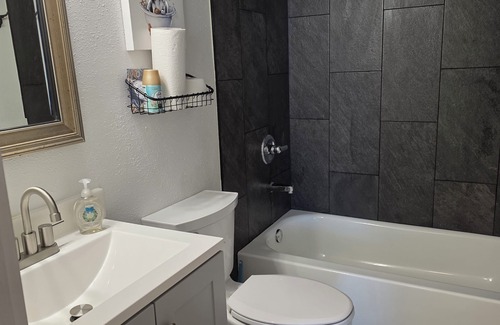 Your San Angelo adventure begins at this 2-bedroom bungalow. The bedrooms feature 2 queen beds, ensuring a comfortable stay for all guests. Enjoy amenities like a hair dryer, heating, washing machine, AC, iron, and WiFi. The bathroom includes a bathtub for added convenience. Our place is equipped for both long or short stays to make your holiday one to remember.
