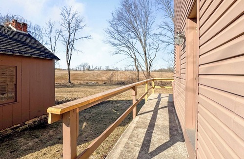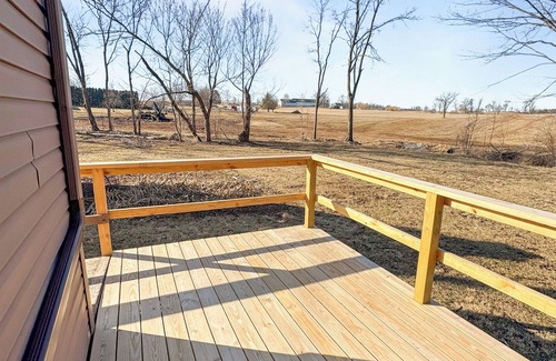 Escape to our delightful bungalow, the ideal getaway featuring scenic farm views. This lovely space offers two comfortable bedrooms—one with a queen bed, and the other designed as a versatile reading nook or workspace, complete with a twin air mattress for extra sleeping space.