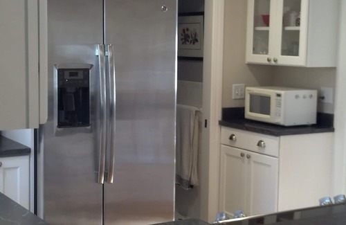 Charming 2-bedroom cottage on a large 1/3 acre lot on a quiet side street near Gray's beach. Gray's Beach has a huge sandbar at low tide, playground, picnic area, and public restrooms open during the summer season. It is also known for its boardwalk out over the marsh where people gather to watch spectacular sunsets. The cottage is walking distance to a town playground as well. Our cottage has a fully equipped modern kitchen with plentiful dishes, glassware, utensils, pots and pans, and a variety of spices for cooking. We manage this property ourselves and use it periodically, so it is much better equipped than corporate managed vacation rentals we have experienced when we have traveled elsewhere. People love the sunroom with its gas fireplace which is very cozy in all seasons. We also have a functioning wood burning fireplace in the living room. Our back yard abuts to conservation land, providing a peaceful setting for enjoying the deck, stone patio, Adirondack chairs, and Weber gas grill. The downstairs has a bedroom and full bathroom for those who prefer to avoid stairs. The upstairs has another bedroom and half bath. A separate nook upstairs has a single futon suitable for a child or as a reading nook. The cottage is located in a beautiful residential area of larger year-round, owner-occupied homes and is located in the Yarmouth Port historic district. It is just one block off the historic 'Captain's Mile' featuring dozens of elegant sea captains' homes. and near to the charming town of Yarmouth Port shops and restaurants. This property is suitable for small families or two couples since the upstairs has its own lavatory, and a door at the top of the stairs for privacy.