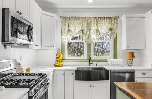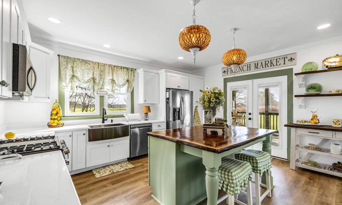 Welcome to The Farm at Wolf Creek. Experience Barnesville like a local in this delightful 2-bedroom farmhouse. Discover the gorgeous landscape that surrounds this place to stay, located on a private farm! Accessed by a private drive and nestled in-between the barn and farmhouse pond, it's the perfect place for a tranquil getaway. Our newly renovated Farmhouse was designed to provide all of the modern amenities while still preserving all of the charm and character you would expect. We can't wait to host you! Complete with a king bed, queen bed, and a cozy living room with a sofa bed, this charming property offers a tremendous stay for guests. Enjoy the convenience of AC, a washing machine, WiFi, and heating during your visit. Relax in the bathtub after a day of exploring the area. We're happy to assist with any questions while you stay at our Farmhouse.