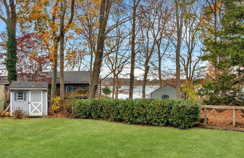 Beautiful North Fork home with a water view in the charming hamlet of New Suffolk. This is a clean, bright, and recently updated two bedroom home with additional flexible space in the large finished basement. The house offers 2 bedrooms with a variety of sleeping arrangements including a king bed, queen bed, and bunk bed. The property also features 2 bathrooms with a bathtub and shower, as well as an additional separate office space with a queen bed in the basement. The large backyard has a dining table and chairs along with a gas grill. With amenities like 2 large smart TV's, WiFi, AC, and a washing machine, guests can relax and unwind in this phenomenal retreat. The home is within walking distance of New Suffolk Beach and popular restaurants, Legends and Minnow. We hope you'll enjoy your stay at our house.