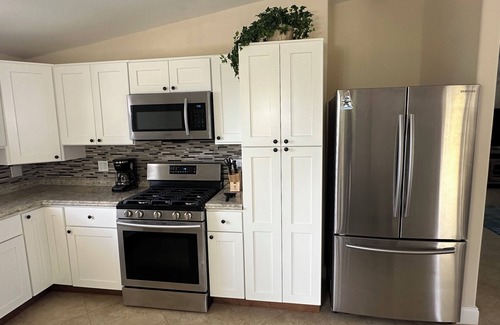 Our cozy yet spacious home features 2 well-appointed bedrooms, each designed with your comfort in mind. The master bedroom boasts a comfortable king-sized bed, en-suite bathroom, and plenty of closet space to store your belongings. The second bedroom is perfect for family or friends, also offering a queen-sized bed, spacious closet and easy access to the second bathroom, which features modern amenities and a walk-in shower.