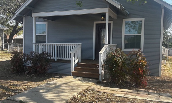 Nestled in Hondo, this delightful house offers a cozy retreat for guests. Fully remodeled in 2024, With 2 bedrooms including a king, full, and twin bed, this marvelous property provides a comfortable stay. Amenities like a washing machine, dryer, AC, Cable, WiFi, and heating ensure a convenient experience. The 2 bathrooms add extra convenience for guests. We think our place will help you experience everything Hondo has to offer. Large fenced backyard and large covered back porch with seating. Lots of parking.