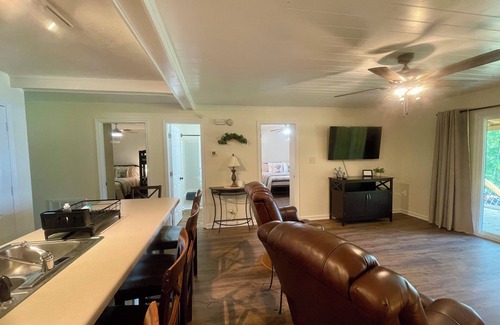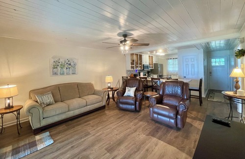 Discover the beauty of Milledgeville and Lake Sinclair from this 2-bedroom apartment. This modern and comfortable space features 1 king bed, 1 queen bed, and 1 bunk bed, perfect for a peaceful night's sleep. With amenities like a washing machine, WiFi, and AC, guests can relax and unwind. The 2 bathrooms offer showers and hair dryers for added convenience. There is lake access and a private dock. The apartment is very close to restaurants and grocery stores, yet, located in a quiet neighborhood surrounded by nature.