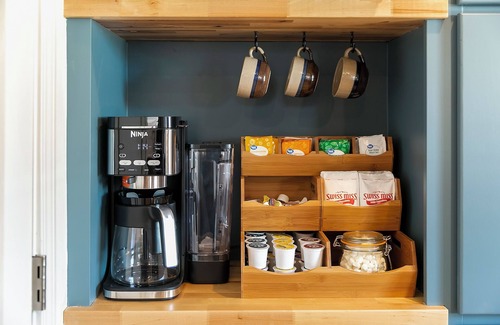 The kitchen has just been refreshed with brand-new appliances, and we can’t wait for you to explore! It’s fully stocked with everything you need, and our coffee bar is a personal favorite.