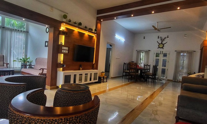 Experience tranquility at our fully private, fenced villa near NH, just a short drive from Munnar. This spacious 2BHK retreat offers a cozy hall, dining area, well-equipped kitchen, and two comfortable bedrooms. Enjoy outdoor seating in a large, secure courtyard with ample parking. Perfect for families and groups seeking peace, privacy, and nature’s beauty. Book your serene getaway today! Discover the beauty of Munnar from this 2-bedroom villa. The cozy space features 2 king beds, 1 sofa bed, and 2 bathrooms with a shower and bathtub. With WiFi and AC, guests can relax and unwind in this adorable retreat. Enjoy all that Munnar has to offer when you stay at our place.