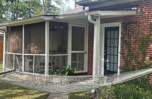 Make yourself at home in this 2-bedroom Conway retreat. This bungalow offers 2 queen beds (one is adjustable Temperpedic), 1 sofa bed, AC, WiFi, and a cozy living space. Rock the day's cares away on the screened in porch or snooze in the hammock. 10 minute to Conway's up and coming downtown district. Enjoy amazing restaurants, live theater, water sports and the new Riverwalk!
