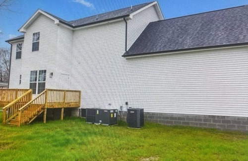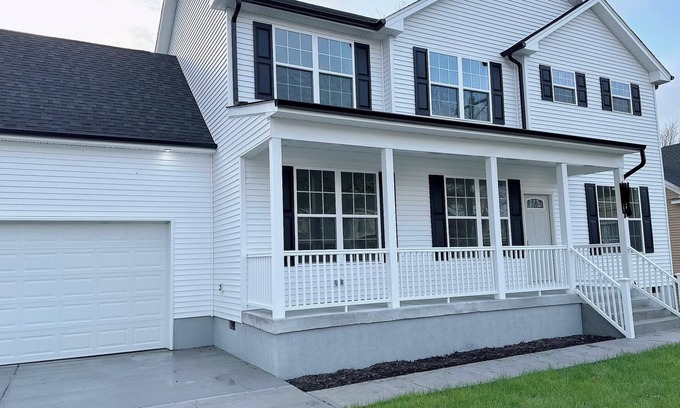 Escape to this welcoming 4-bedroom house in Suffolk. With 1 king bed, 1 queen bed, and 2 twin beds, guests will find the perfect setup for a comfortable stay. Enjoy the enjoyable amenities like AC, WiFi, and a washing machine. Three bathrooms with shower amenities ensure convenience for all. Your stay here will be nothing short of perfect. We'll be available to answer any questions while you stay at our place.