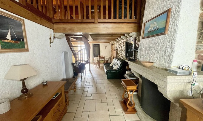 As soon as you enter, you will be seduced by the warm atmosphere of this house. The fully equipped kitchen is open to the living room, offering a pleasant living space to share good times with family or friends. On the ground floor, you will also find a first bedroom with a 140 bed as well as a second bedroom with a 90 bed, a shower room with WC and a separate toilet with washbasin.