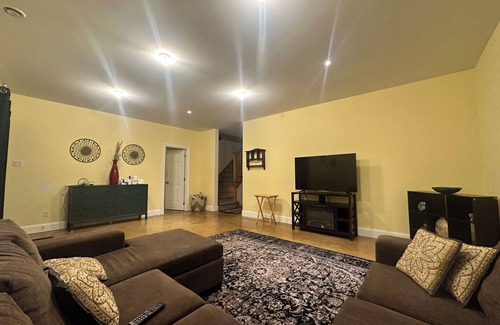 Welcome to your perfect getaway! This spacious home features a fully stocked kitchen and a game room! includes three comfortable bedrooms with queen and twin beds. 2.5 bathrooms Unwind in the game room with darts, air hockey, and foosball.Step outside to a lovely backyard with a BBQ, surrounded by the beauty of Victoria Park. Enjoy scenic trails leading to waterfalls and hiking paths, or explore the nearby Truro Rail Yard, known for its exceptional mountain biking trails. Book your stay today for relaxation and adventure.