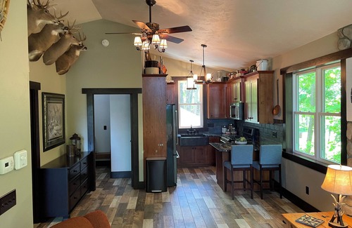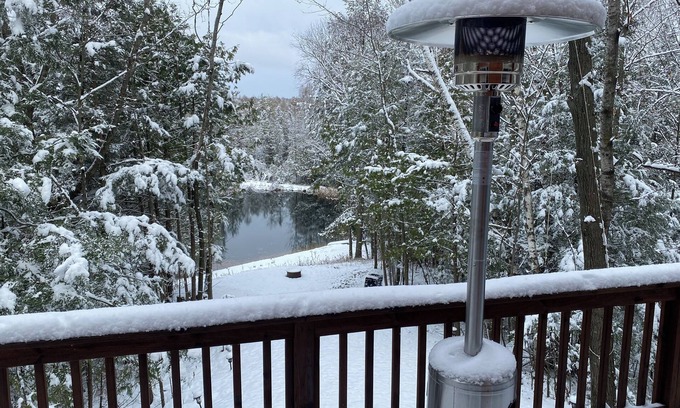 Consider this adorable cabin your home away from home while you visit Pound. This cozy retreat features 3 bedrooms - one with a queen bed, one with a bunk bed, and a sofa bed for extra guests. You'll also find 2 bathrooms with tile showers and all the essentials you need. Nestled between Kelly and White Potato Lake and only 45 mins from Green Bay, this new construction cabin offers is own private spring fed pond for soaking up the sun, swimming or casting a line. In the winter try ice fishing, sledding, or just relax in this cozy cabin. Explore the ATV/snowmobile and hiking trails, waterfalls, fishing, or relax, and enjoy everything the northwoods and our cabin has to offer.