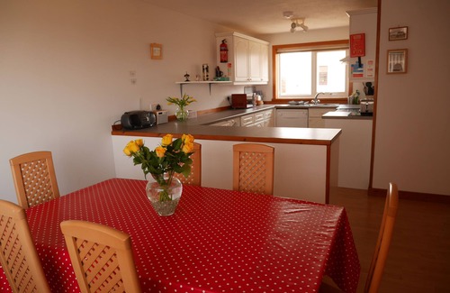 There is one double room, two twin rooms and a sofa bed in the sitting room. The bathroom has a large bath and separate shower cubicle. The kitchen has a large dining area suitable for entertaining families or groups.