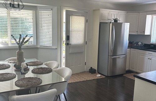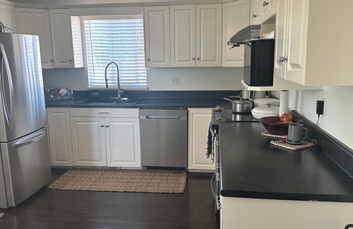 This bright and spacious 3 bedroom 2 bathroom main suite comes with a full kitchen with everything you need to cook, bake, or barbecue up a storm. Step outside on to one of 2 private patios overlooking either the front or large backyard garden to enjoy your morning coffee or evening drinks. The primary bedroom has a large walk in closet and an ensuite washroom including a large jetted tub and heated toilet with bidet. The main bathroom includes a walk in shower with rain head, waterfall, and high pressure jets. A full laundry room is included with top end front load washer and dryer. Living room is step up with 2 full size couches plus an additional seating area.