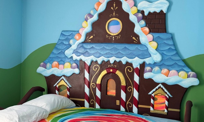 The 2nd bedroom has a queen size bed. The third bedroom has a twin over full bunkbed with views of the goat pasture.