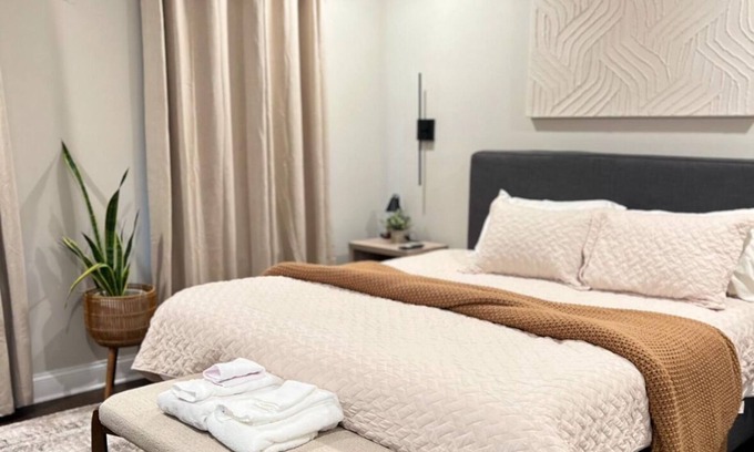 Welcome to our beautifully designed, modern home, perfectly situated just minutes from the best that the city has to offer! Whether you're in town for business or leisure, this stylish and comfortable retreat is the ideal base for your stay. This 3-bedroom, 2.5 -bathroom home features an open-concept living space with high ceilings, large windows, and plenty of natural light. The sleek design blends modern aesthetics with comfort, offering both relaxation and style.