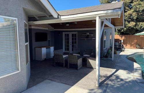 Charming 3-bedroom house in Turlock with AC and WiFi. Pool and Tub and Patio TV. | House in Turlock