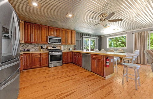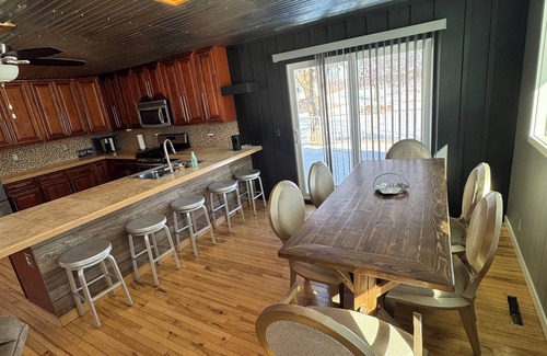 Waterville is waiting for you at this 3-bedroom house. This charming property is located 1 mile from Kamp Dels. Featuring 2 queen beds and 1 bunk bed, perfect for families or friends looking for an excellent getaway on the lake. With amenities like Large wrap around deck with hot tub, private dock accessible across the street and down a few short steps for boat or jet skis, fire pit, large kitchens and dining area with cooking utensils, WiFi, Netflix, and a washing machine, guests can relax and unwind after a day of exploring. Experience what Waterville has to offer with a stay at our house.