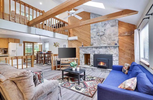 Escape to the Poconos and unwind in this inviting 3-bedroom, 2-bathroom home located in the heart of the highly desirable Locust Lake Village. Perfect for families or groups, this cozy getaway features 3 comfortable queen bedrooms, a relaxing jetted tub, and a spacious living room with reclining sofas and a futon. A loft area offers extra sleeping space with a sofa bed and air mattresses—ideal for larger groups or kids.