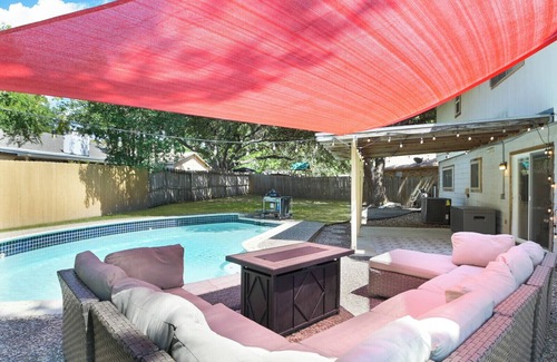 Yes, this North San Antonio - SAT house has a swimming pool. Check the Facility Overview section for details about the pool and other available facilities.