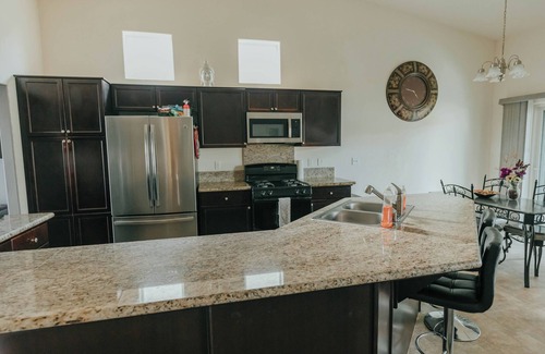 Your cozy getaway awaits in Madera at this fabulous house. Comfortable, safe & spacious, this new build single-family home with 4 bedrooms is outfitted for a restful night’s sleep. Master bedroom with king mattress and large soaking tub with separate shower in en suite. There are also 3 additional guest bedrooms with full sized closets. First room with queen, second with twin and 3rd room with 2 twin mattresses.