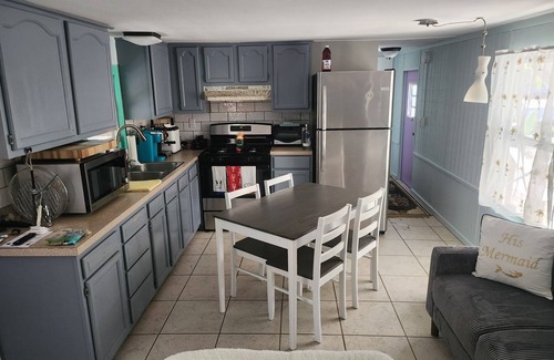 Experience Marathon to Key West (right smack dab in the middle) like a local in this freshly painted 2-bedroom mobile home with RV hook up for additional guests. This is a crystal clear canal front residence with direct open water access to the Gulf and Atlantic Ocean. Bring your boat/jetski and dock in front of the Tiki Hut in front of the home. The boat ramp is less than a mile from "da lobster shack". This cozy space features 2 brand new queen beds in the bedrooms and 1 brand new full bed pull out couch in the living room. With brand new AC to keep you cool and a refreshing shower in the bathroom, guests will feel right at home. There is a brand new 86 inch TV in the living room and 2 brand new 55 in TVs in the bedrooms. All brand new appliances including gas stove/oven, microwave (4 in one), fridge and freezer, ice maker, Capresso coffee and capachino maker, Keurig, washer/gas dryer. Additional fridge/freezer outside for additional refreshments and or frozen bait. Built in brand new propane grill. (no need for a tank, just turn on). Easy access digital keyless entry making key life much more enjoyable. Book now and enjoy everything this welcoming property has to offer.