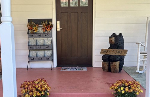 Charming bungalow with spacious back deck and front porch to take in Balsam Mountain views. Guests appreciate the convenience of being within a 5-minute stroll to historic Hazelwood Village, a .9 mile walk to lively downtown Waynesville, 15 minutes from the scenic Blue Ridge Parkway and a 35-minute (30 mile) drive to downtown Asheville. We are located on a quiet side street with a spacious fenced in yard for those staying with children or pets. Guests enjoy relaxing on the front porch rockers and taking in a beautiful mountain sunsets or dining on the generous back deck. After a day of hiking, sightseeing, or antiquing enjoy dinner at one of the many Waynesville restaurants, from upscale gourmet to casual and relaxed. The Balsam Black Bear offers a primary suite w/ensuite double vanity bath and ample closet space. The secondary bedroom/office consists of an ensuite bath and queen size pullout. A double pullout is also available in the living area. There is a large well stocked kitchen complete with Keurig coffee maker, air-fryer, microwave, and gas range. This 1920's charmer is a sun filled space with beautiful heart of pine floors, Roku Smart TV with Amazon Prime, Netflix and Hulu. All amenities are provided. Two night minimum stay. We look forward to hosting you.