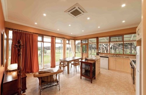 Ideal for couples, and friends travelling together, The Workman’s Cottage offers a peaceful rural getaway. The cottage features two spacious bedrooms: one king bedroom with an ensuite bathroom and one queen bedroom. Additionally, there is a main bathroom to serve the queen bedroom. The cozy living room with a fireplace invites you to relax and unwind, while the fully equipped kitchen provides everything you need to prepare and enjoy home-cooked meals. Enjoy views overlooking the MacGillivray Cricket Ground from the kitchen, where you might catch a cricket match in the distance if you’re staying between October and March.
