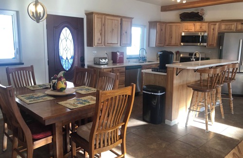 Handicap accessible upon request. Escape to this lovely 3-bedroom house in Palmer. Unwind in the cozy bedrooms featuring 1 king bed and 2 queen beds while taking in the majestic mountain scenery from every window . Enjoy all the convenience of home with amenities like a washer and dryer, stocked kitchen and bathroom, Pool table, ample living room seating, large TV, dining space, and WiFi. This fabulous retreat is perfect for both short getaways and extended stays. While located on a quiet street outside of town, you are only 10 minutes from the heart of Palmer and highway access to the hustle and bustle of City life. Location is close to trail heads, Jim Creek and the unforgettable Reindeer Farm. Our place is the perfect retreat to catch up with friends, relax on a business trip or travel with the family. This cozy home is ready to welcome you and we aim to make your stay one to remember.