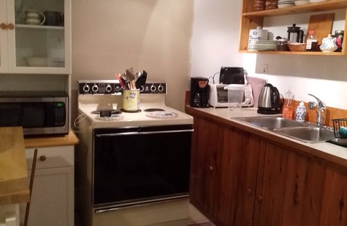 This charming apartment in Mystic is a gem for guests seeking a cozy retreat. With an open floor plan, including a queen bed, and a bathroom equipped with a bidet and bathtub, this superb space offers all the comforts of home. Enjoy amenities like AC, WiFi, a smart TV, full kitchen, and access to laundry facilities during your stay. Whether you're exploring downtown Mystic, area attractions, or just want a quiet place to relax indoors or outside surrounded by enchanted gardens, you will enjoy this property.