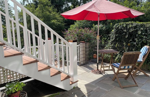 Charming apartment overlooking private gardens, walk to downtown Mystic | Apartment in Groton