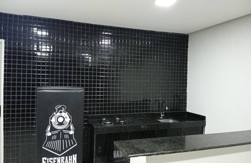 O apartamento,tem churrasqueira, chuveirão,mesa na área de serviço pra quem gosta de um churrasco!